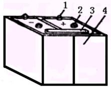 酸性蓄电池主要由容器、极板、隔板三部分构成,其外形结构如图所示。